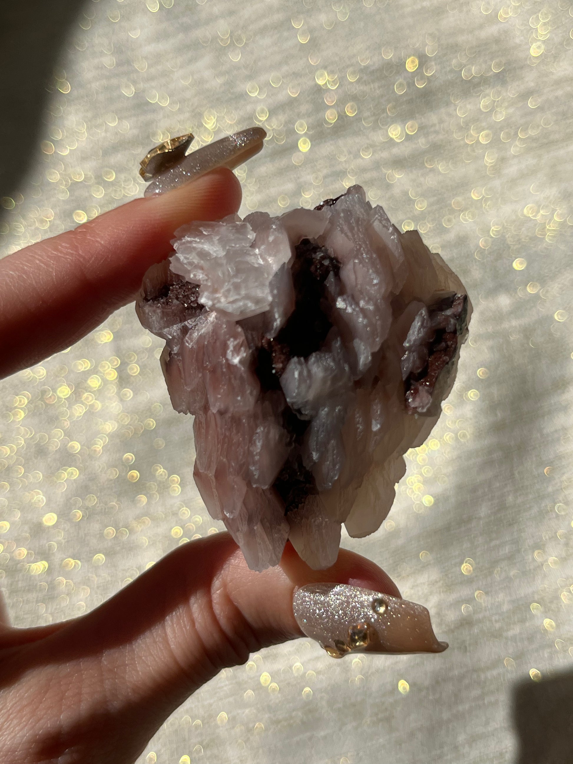 Twilight Plum Quartz with Sakura Blossom Calcite Meaning