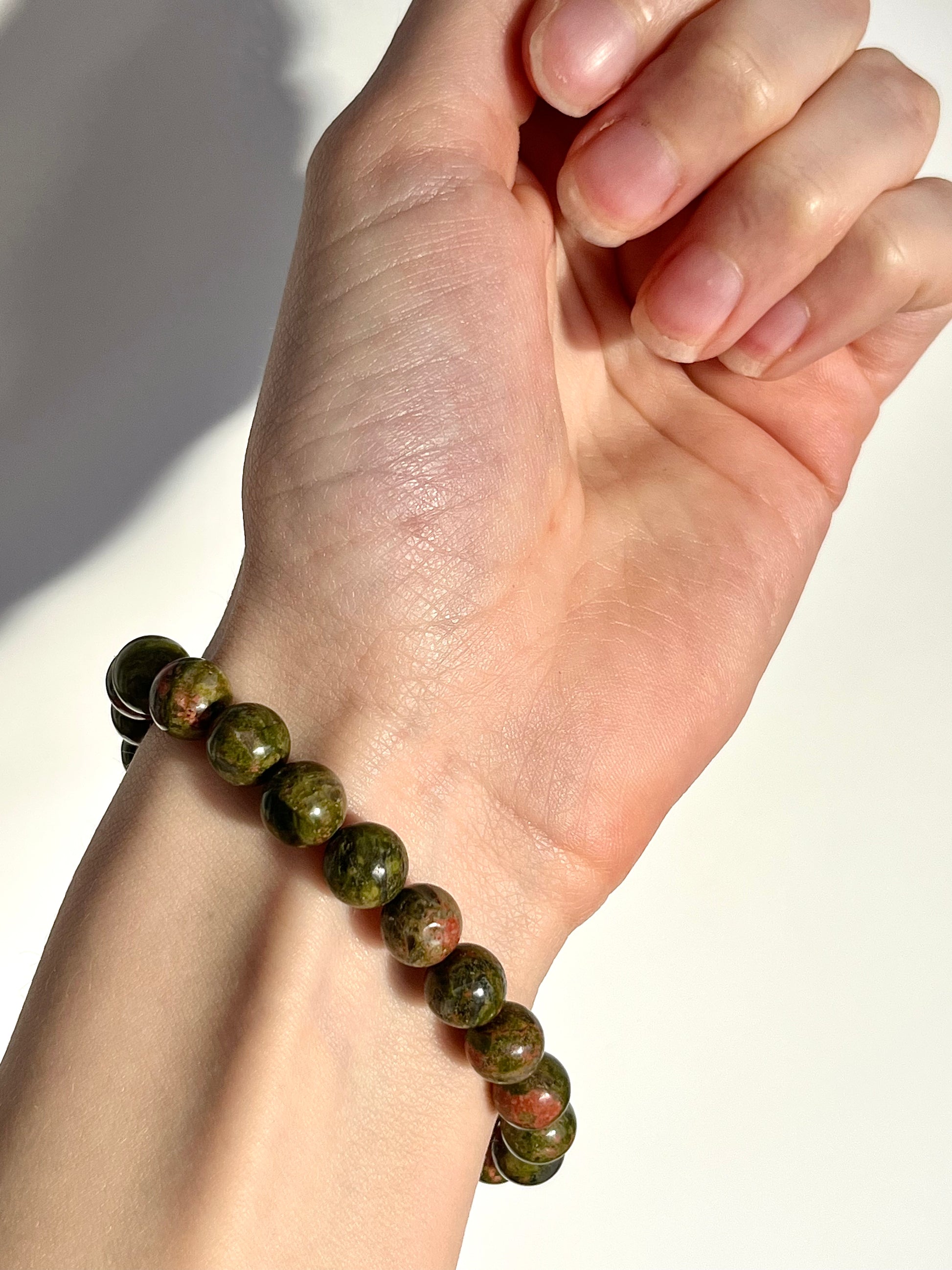 Unakite 具有强烈的女性气质和滋养性,通过根脉轮将您的精神与下方的地球母亲连接起来,并通过心脏与以太连接起来。这种独特的联系使您能够与宇宙的节奏保持神圣的协调;它的潮起潮落。