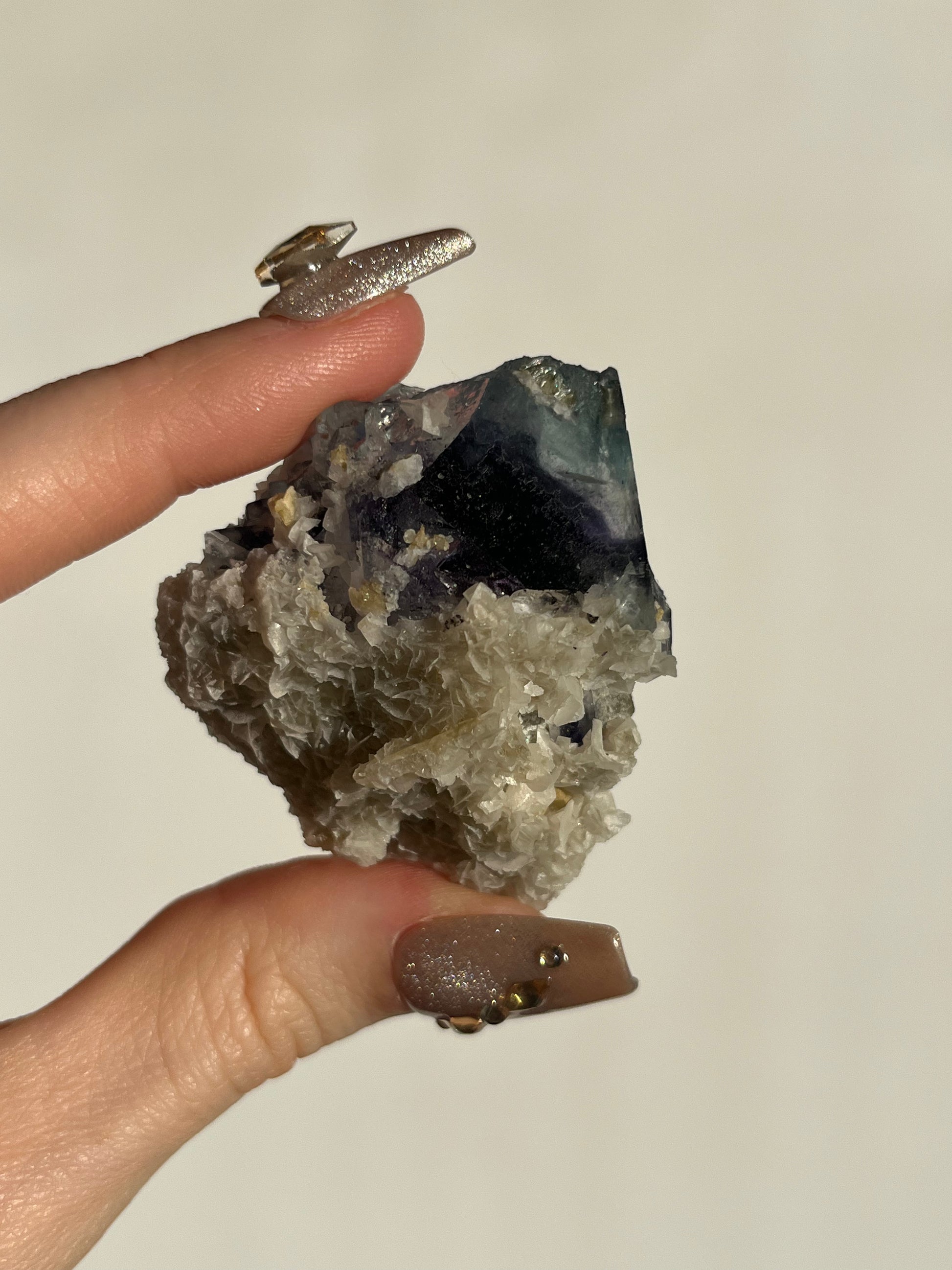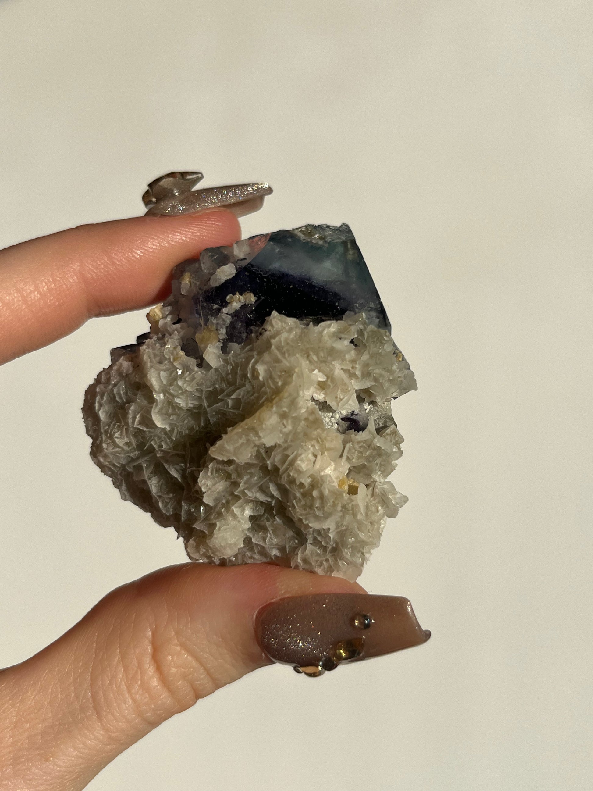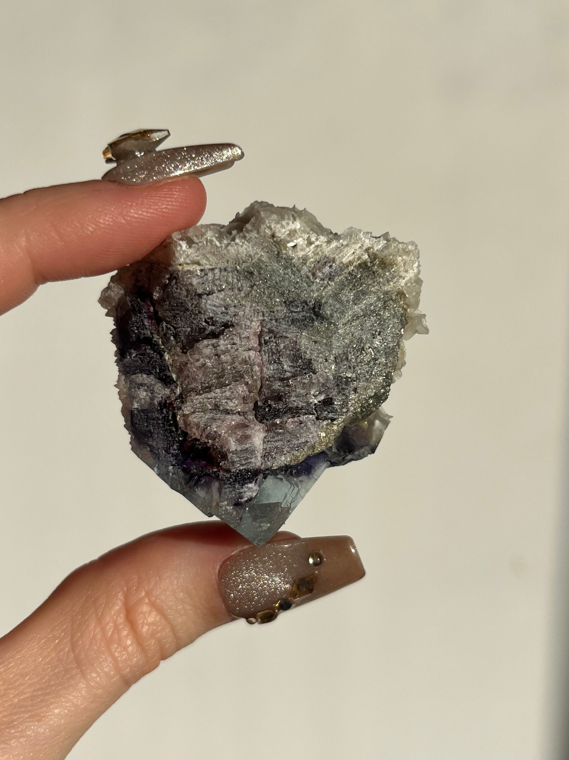 Violet-Green Yindu Fluorite with Muscovite and Calcite Specimen D