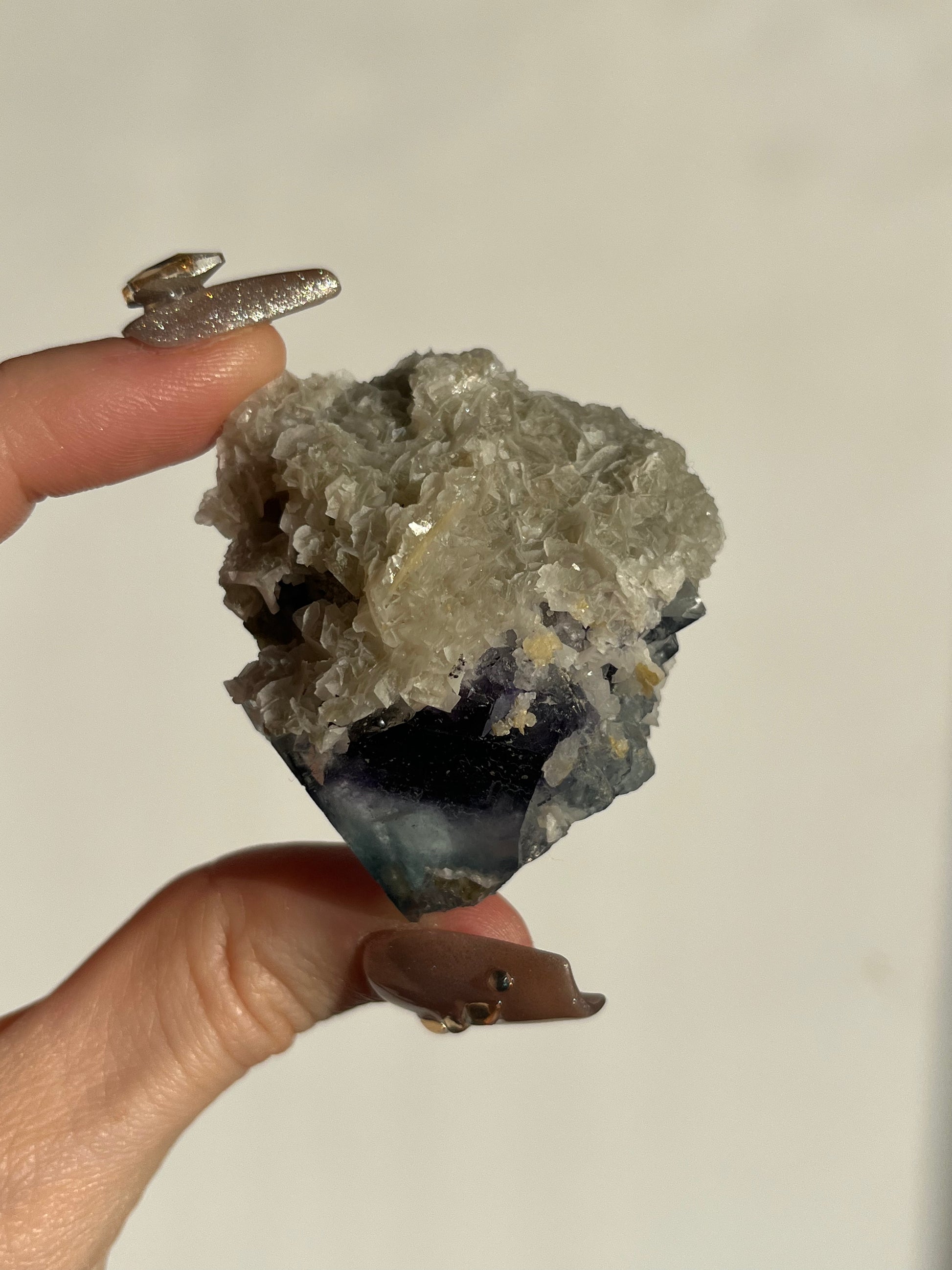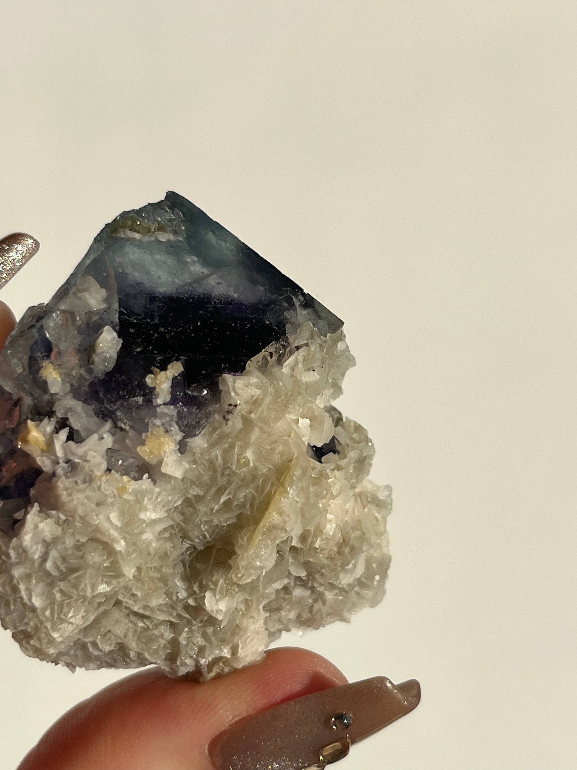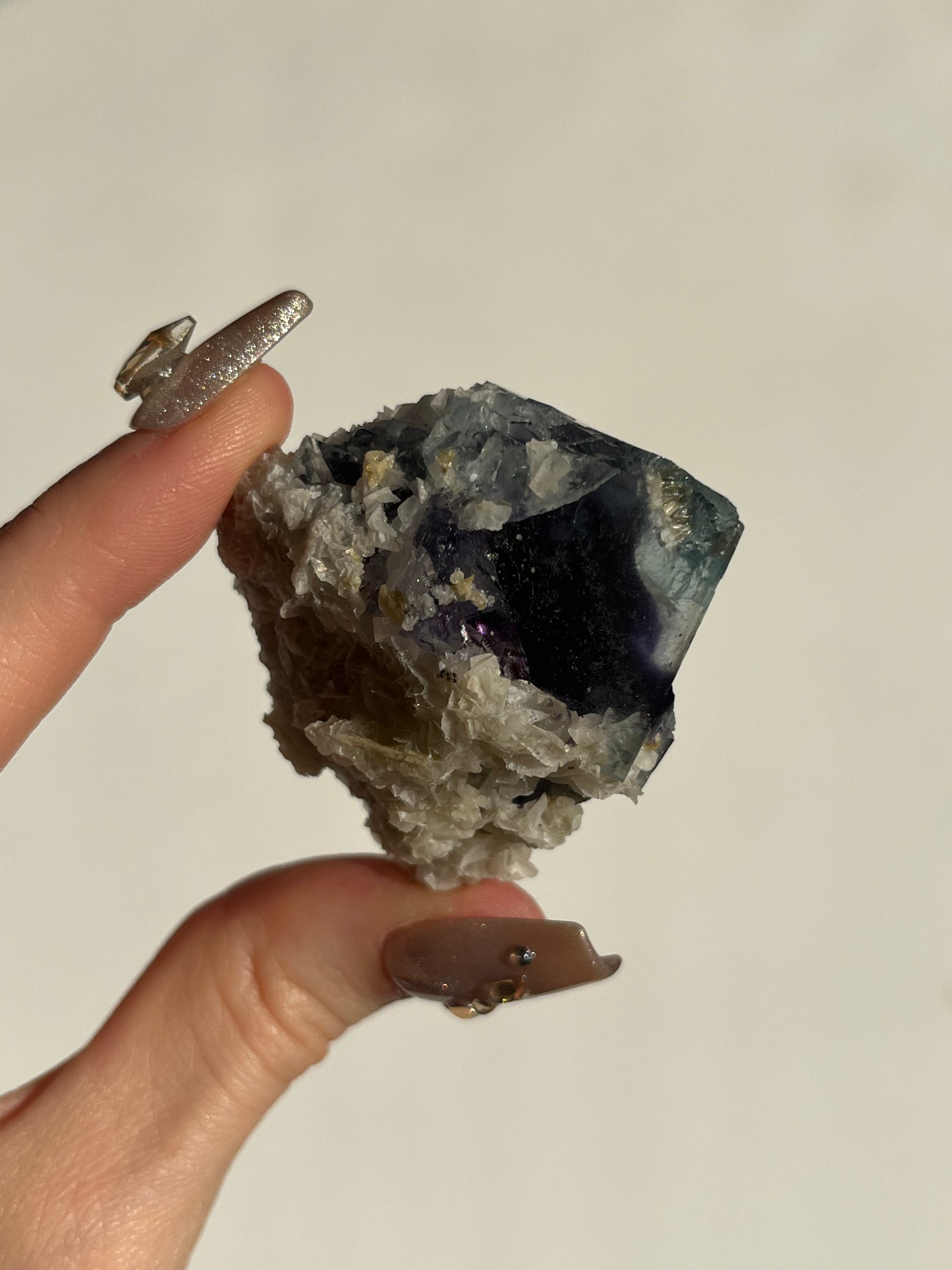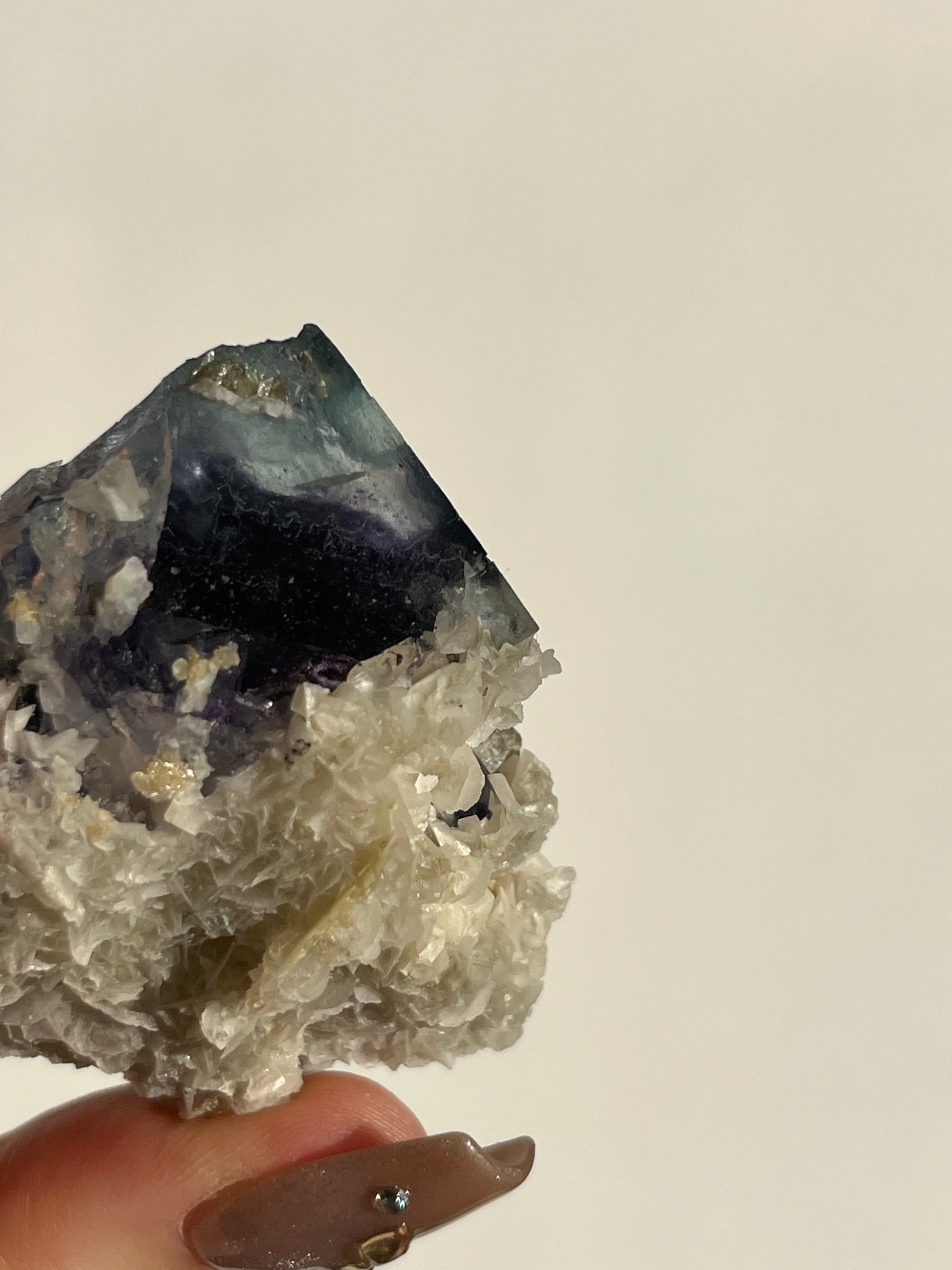 Violet-Green Yindu Fluorite with Muscovite and Calcite Specimen D