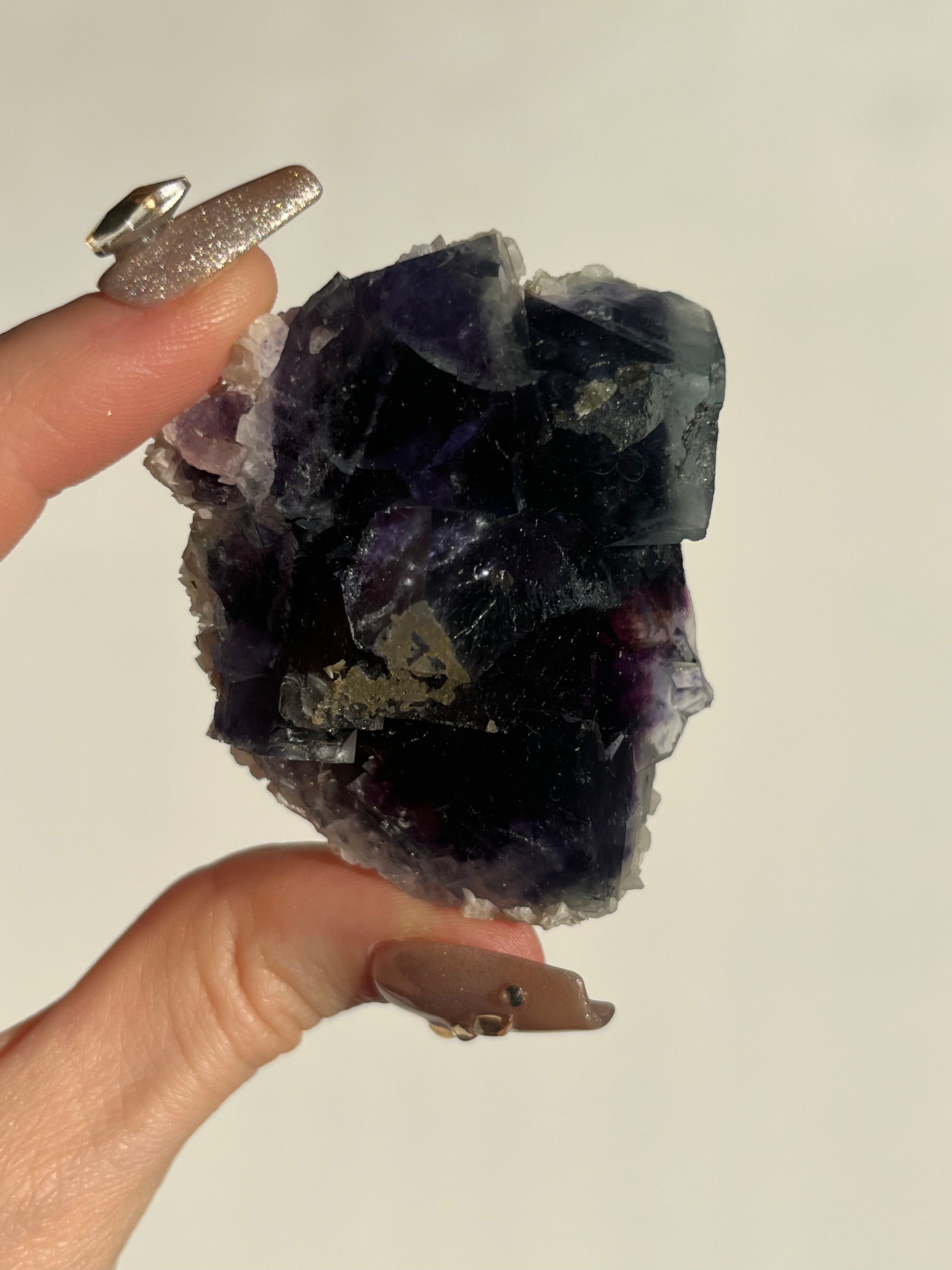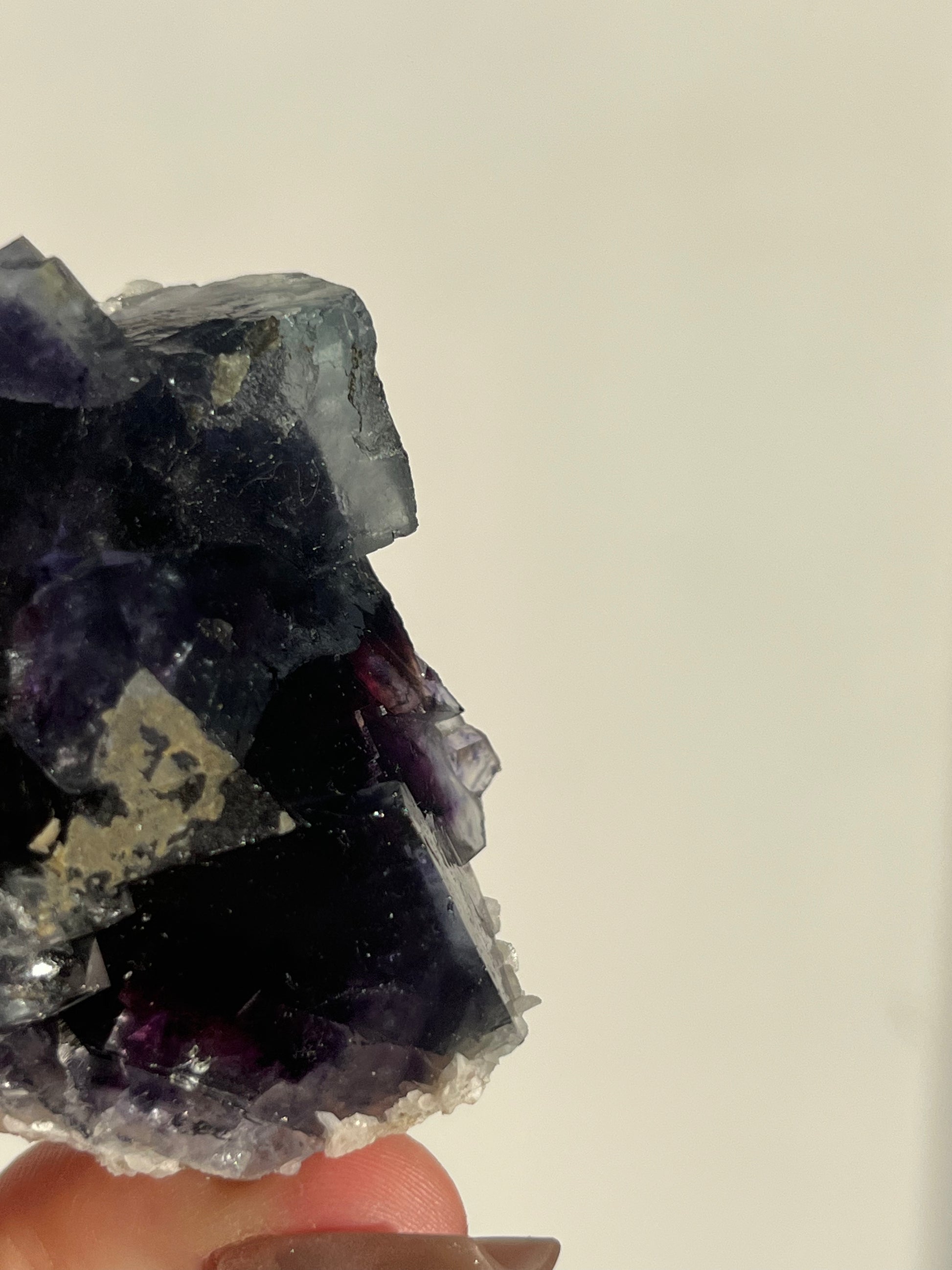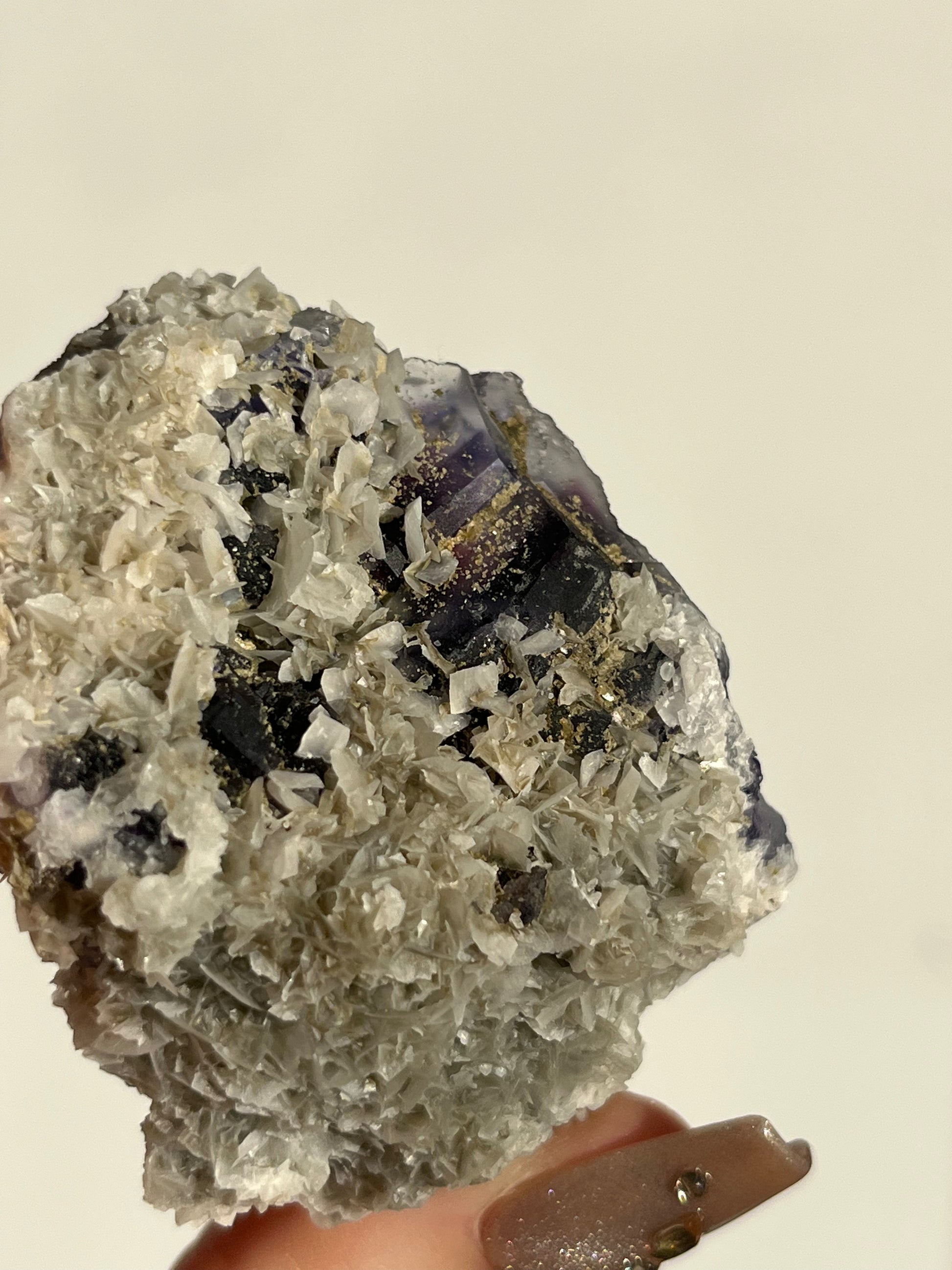 Violet-Green Yindu Fluorite with Calcite Specimen E