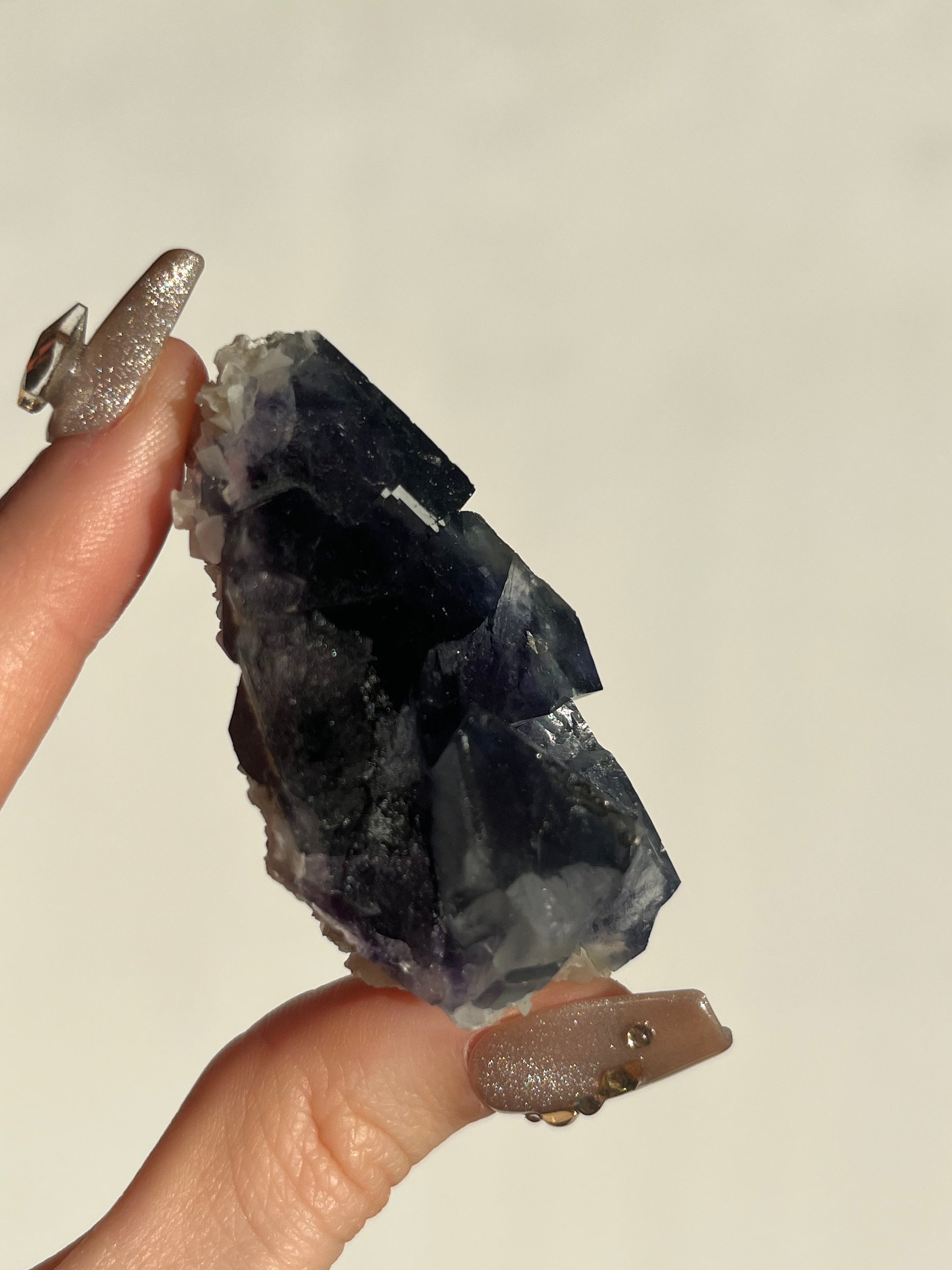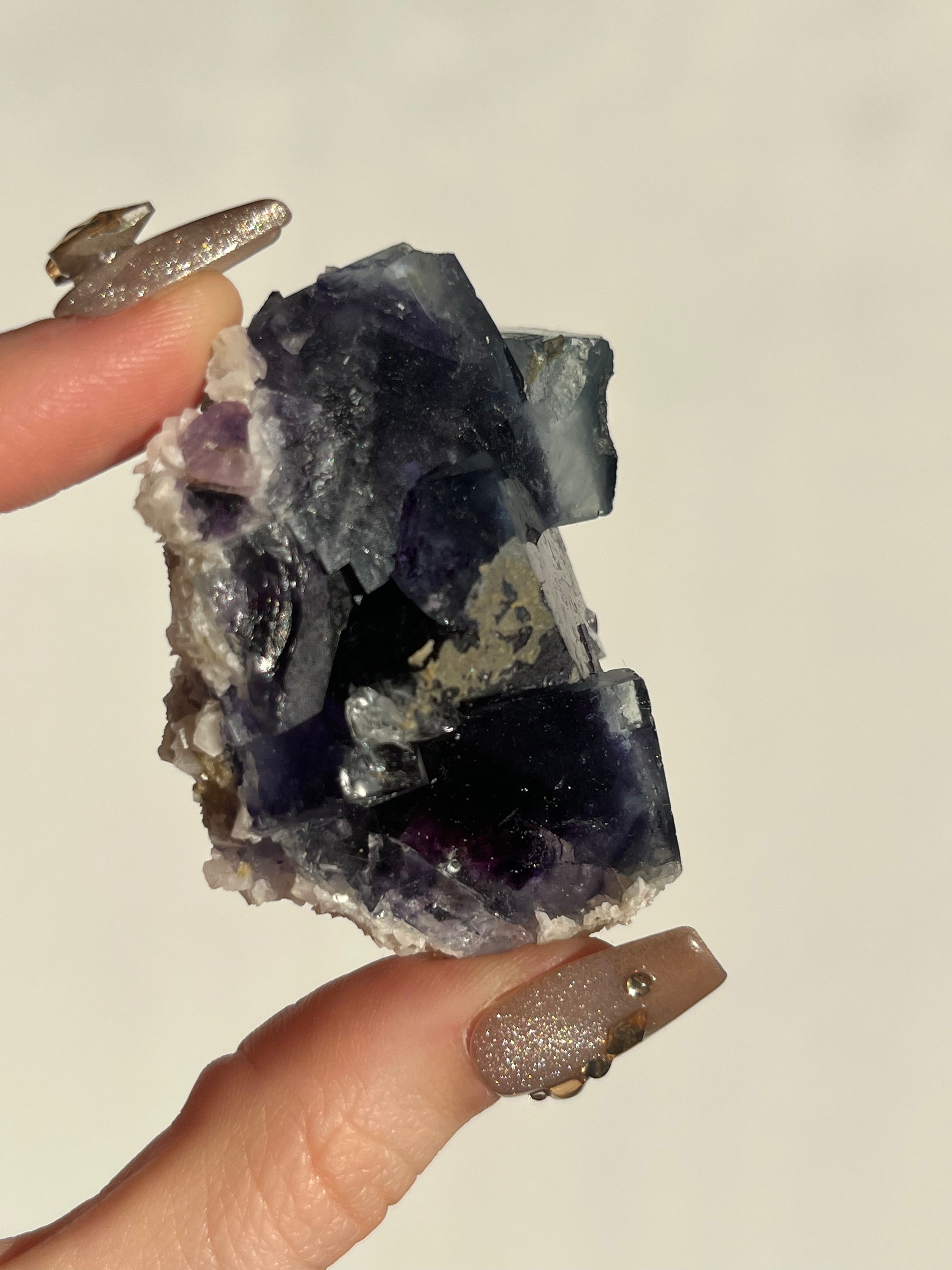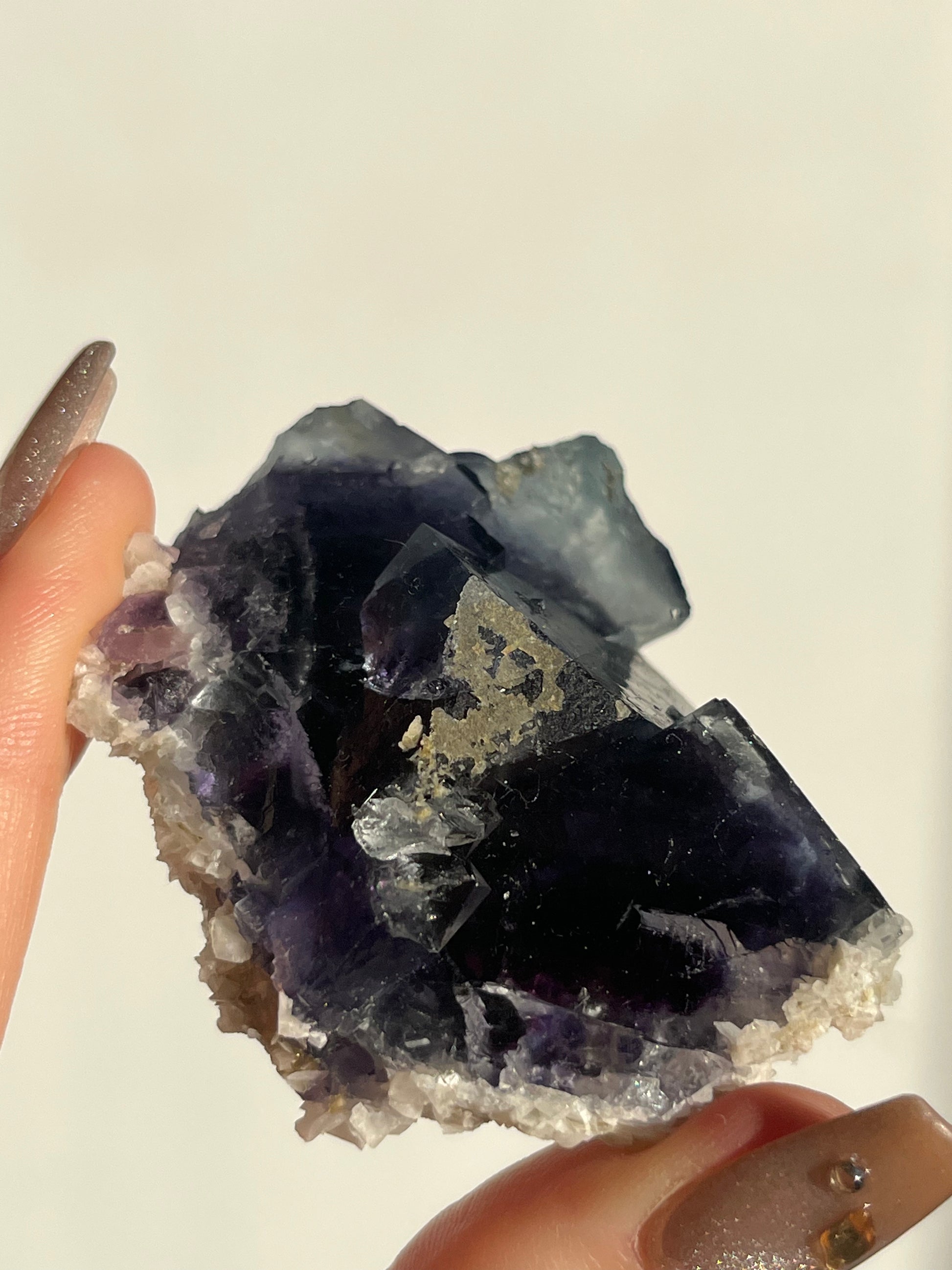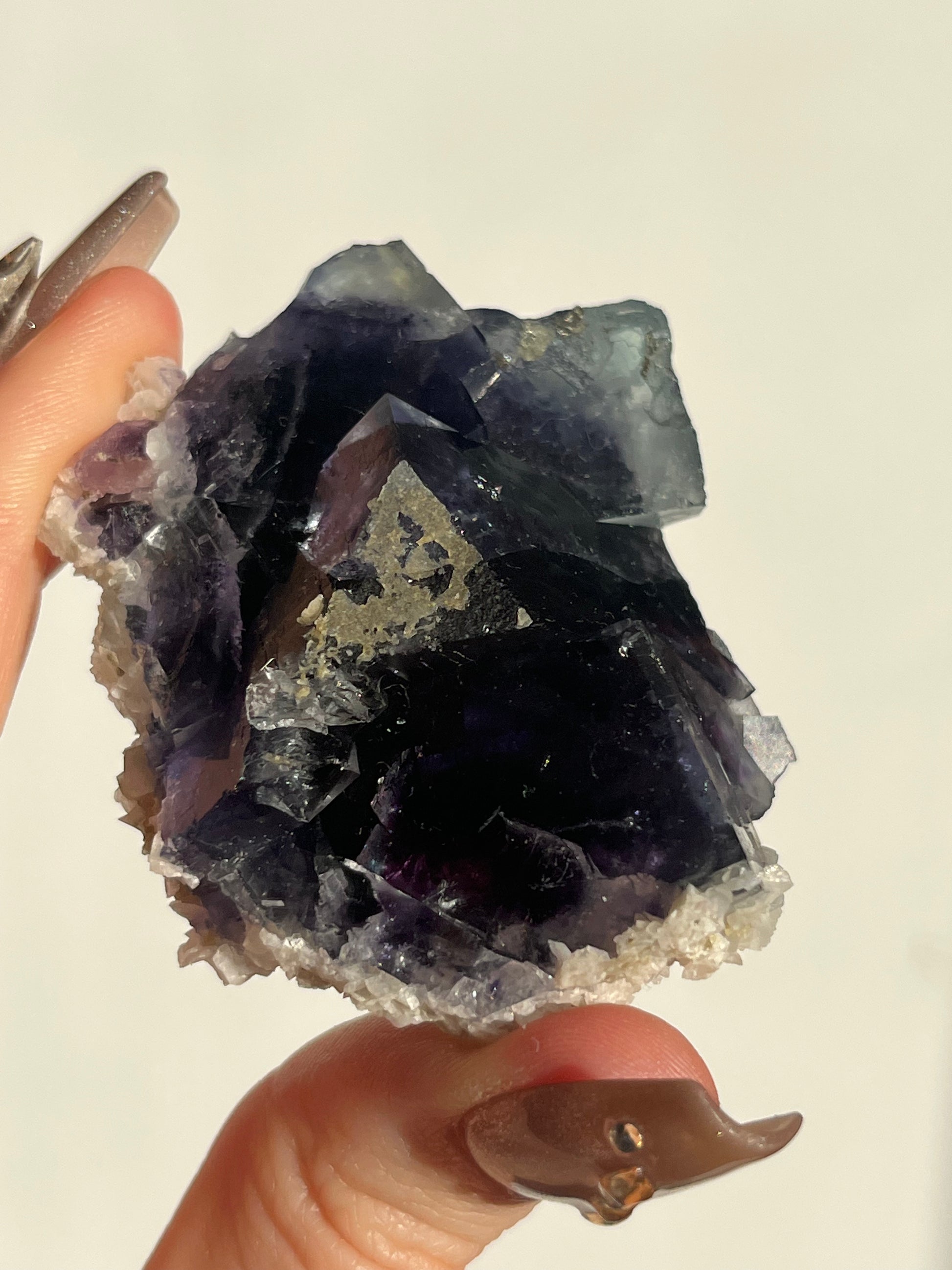 Violet-Green Yindu Fluorite with Calcite Specimen E