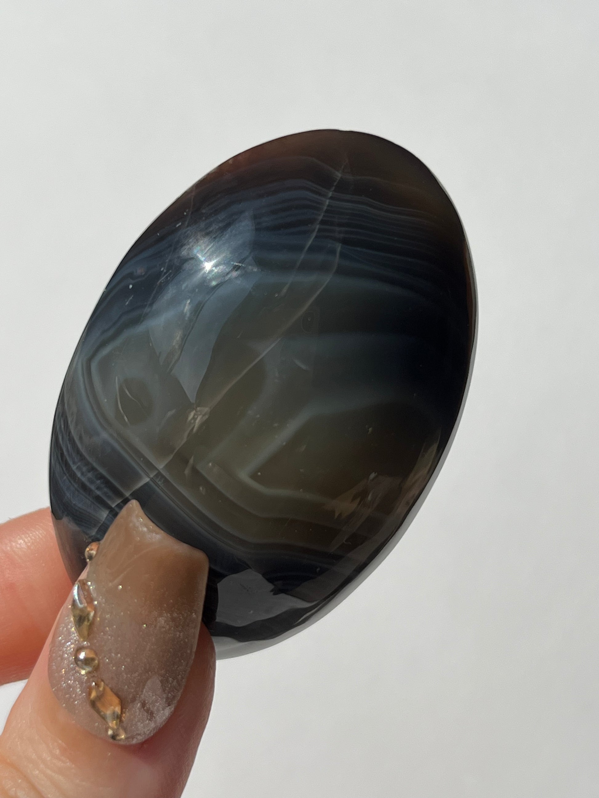 Yellow and Blue Banded Agate Palmstone with Parallax Effect C